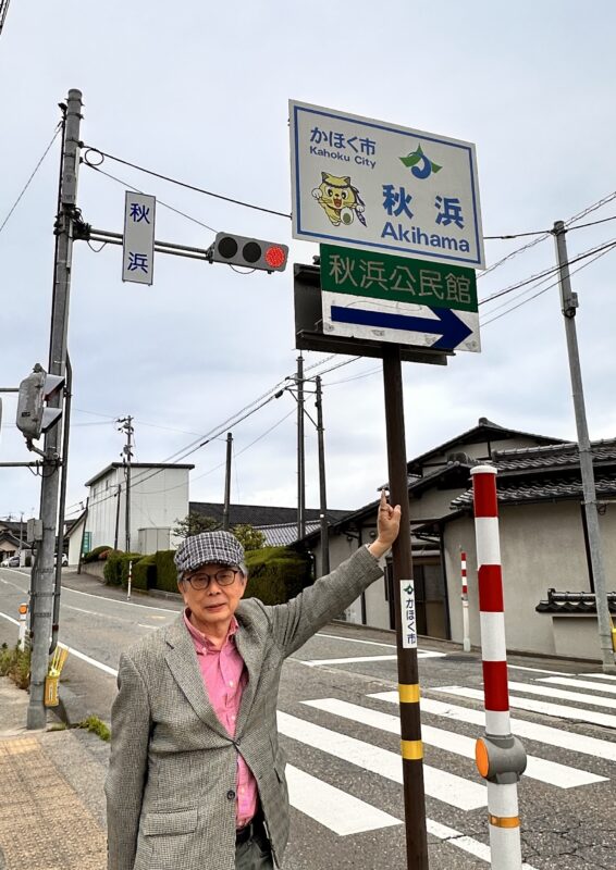 交差点の表示や地域の公民館等にも「秋浜」の表記があり、訪れた際は、記念撮影をしています!