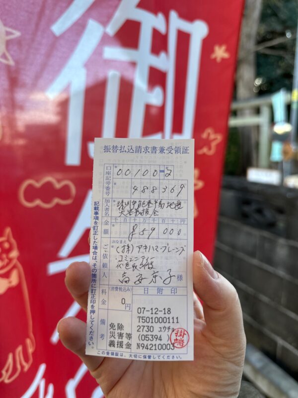 「能登半島珠洲市復興応援御朱印」の義援金と、